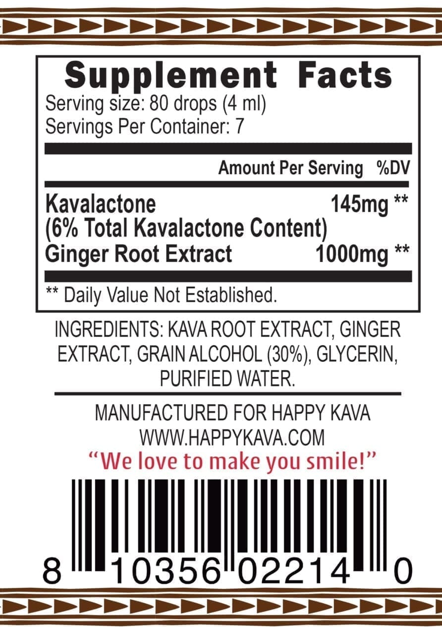 *These statements have not been evaluated by the Food and Drug Administration. This Happy Kava Brand Ginger Kava Tincture Blend is not intended to cure, treat, diagnose, or prevent any disease.