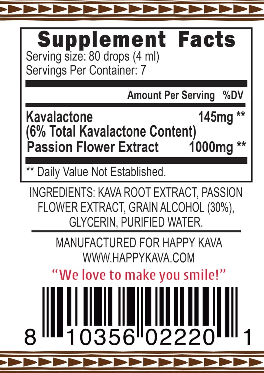 *These statements have not been evaluated by the Food and Drug Administration. This Happy Kava Brand Passion Flower Kava Tincture Blend is not intended to cure, treat, diagnose, or prevent any disease.